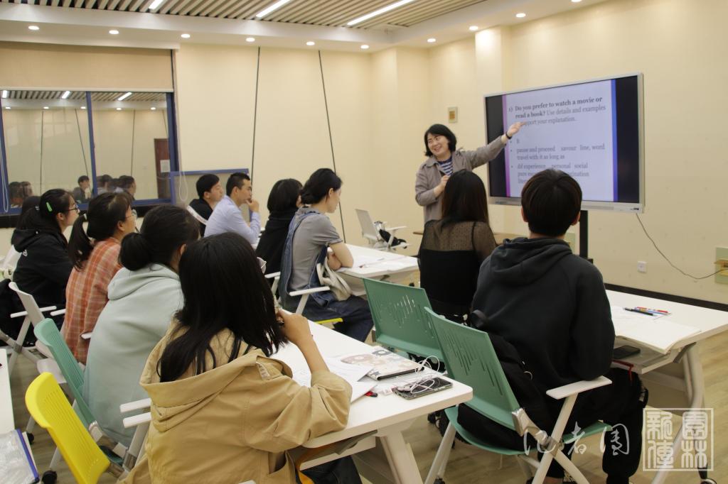 活动伊始,授课老师用简易轻松的即时问答活跃课堂气氛。同学们通过丰富的课程资料和简明扼要的幻灯片学习知识,课堂气氛轻松,同学们在阅读文本期间神情专注,在自由交流环节中发言踊跃,有的同学虽然发音稍不标准,但也并无怯意,在老师与其他同学的共同帮助下反复纠正,臻至完美。