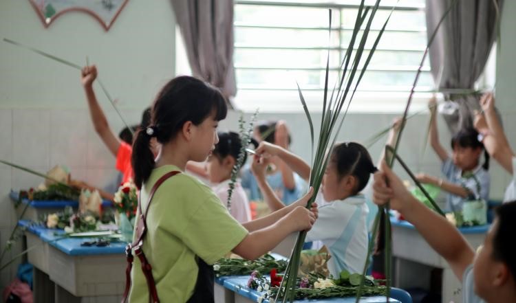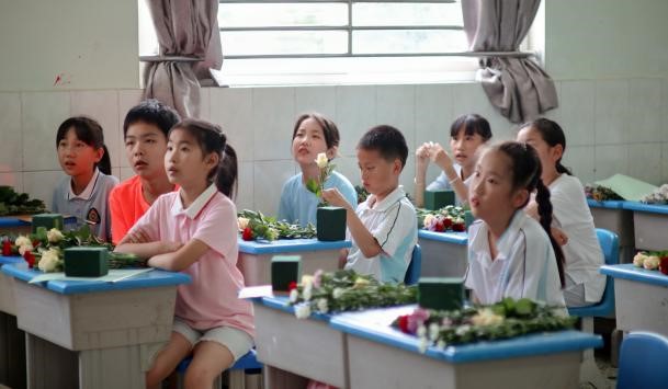 6月28日下午,园林系教学科普团队来到澳门十大网投正规官网平台附属学校,为暑假营四年级的近50位师生带来了一场别开生面的插花科普活动。