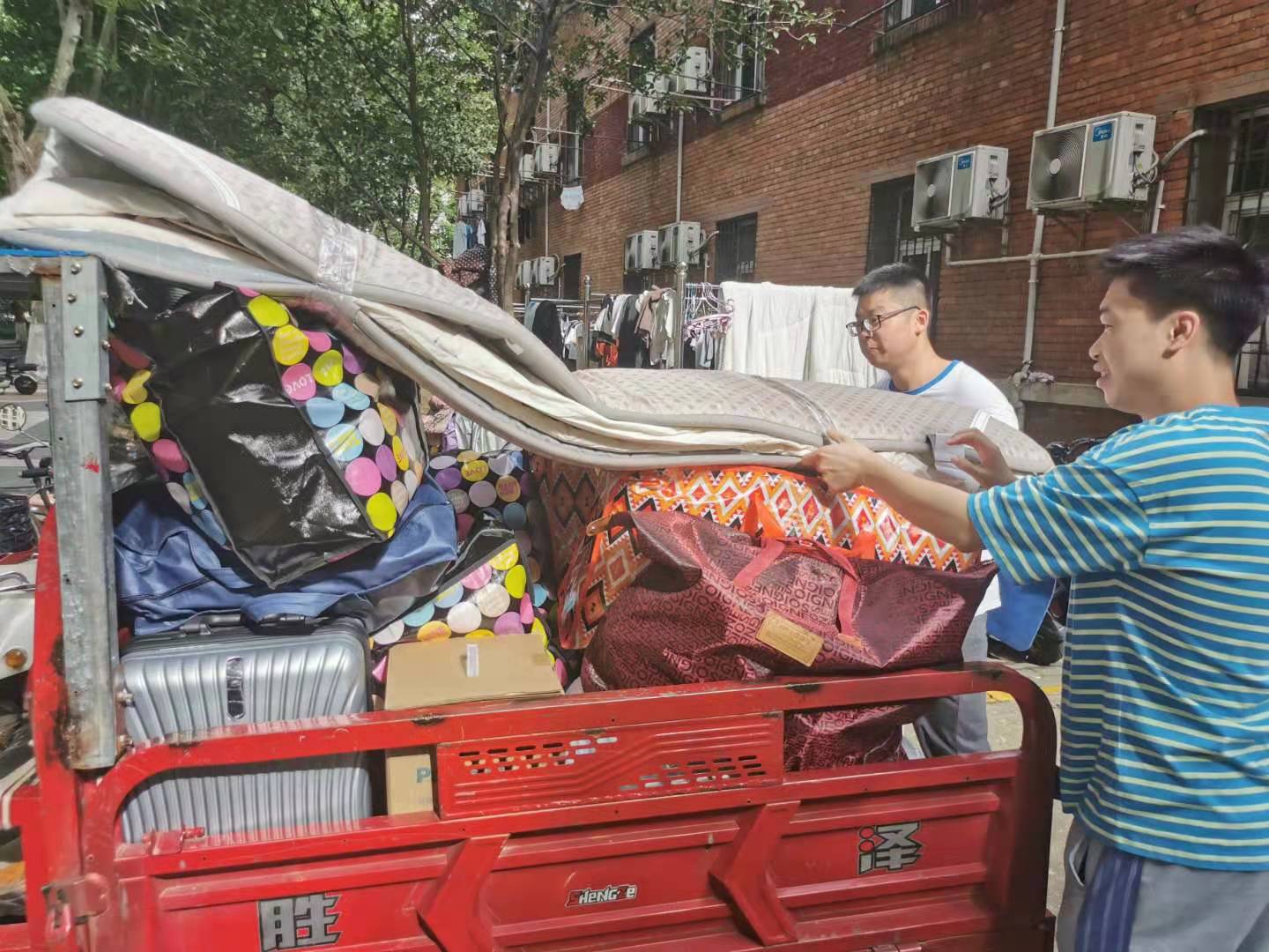 盛夏的炎热丝毫没有抵挡住党员志愿者全心全意为同学们服务的热情,充分履行着党员的责任和义务。在搬迁服务过程中,各党支部委员先与对应的研究生一一联系,再安排志愿者分头合作为相应研究生进行运送行李和打扫宿舍,有条不紊地开展着搬迁工作。