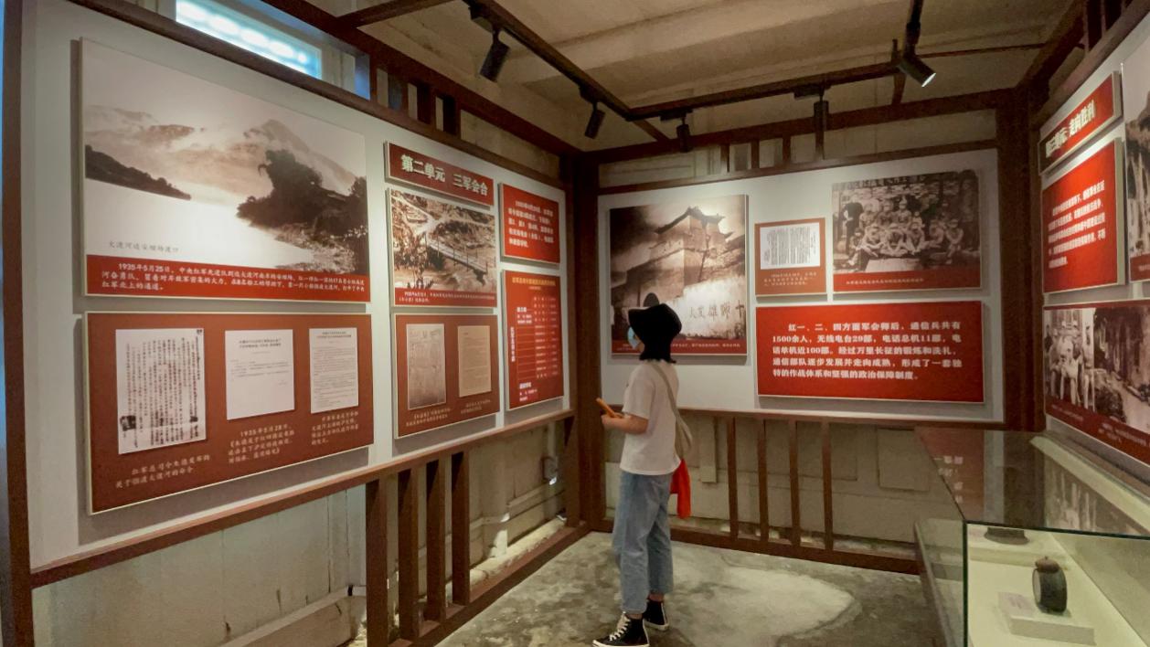 次日,实践团二队前往习水县土城古镇四渡赤水纪念馆参观学习,通过在馆内的智能互动学习体验区的体验,及智能语音讲解,成员学习到在土城镇渡口工农红军和百姓之间所发生的故事,受益匪浅。