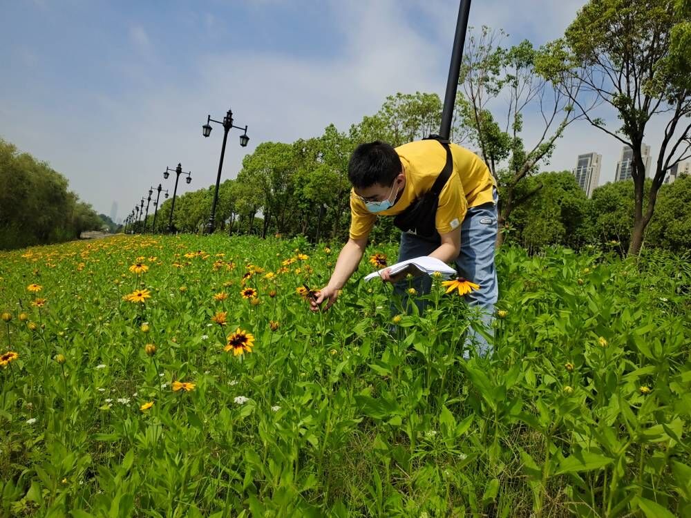 团队成员首先到达武汉市江滩公园二期、三期及府河流域开展河道边坡的植被恢复调查。园建公司为团队成员讲解了不同位置采用的不同工程措施。接着成员们进行分工,对边坡植物的长势、种类、边坡工程措施的完整程度进行调查。通过调查发现,边坡种植的植物只有小部分得以保留,大部分被乡土植物通过竞争所替代,其中,位于机场高速公路旁的府河流域河道边坡则未考虑夏季丰水季节被水淹没的问题。结合所学知识,在请教带队教师后,团队成员得到结论,在进行植物配置的时候,要优先考虑乡土植物,做到适地适树原则。在堤岸边坡中,植物的配置还要考虑水淹的问题,应配置一些能够短时间耐水淹的植物。