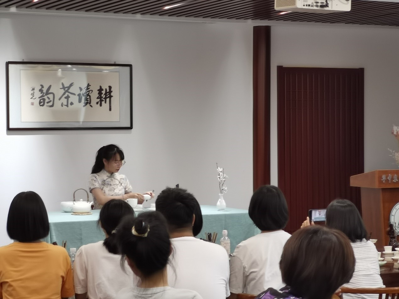 最后,多项体验活动悉数展开,在茶学专业师兄师姐的示范讲解下,温碗、赏茶、冲泡、分茶、品茗,每一个步骤大家都在用心体验操作。利川红、小青柑、武夷岩茶……耕读茶室茶香氤氲,参加活动的新生们一边品尝着自己亲手冲泡的茶水,一边与新同学分享着自己与茶的故事和自己对茶的认识。