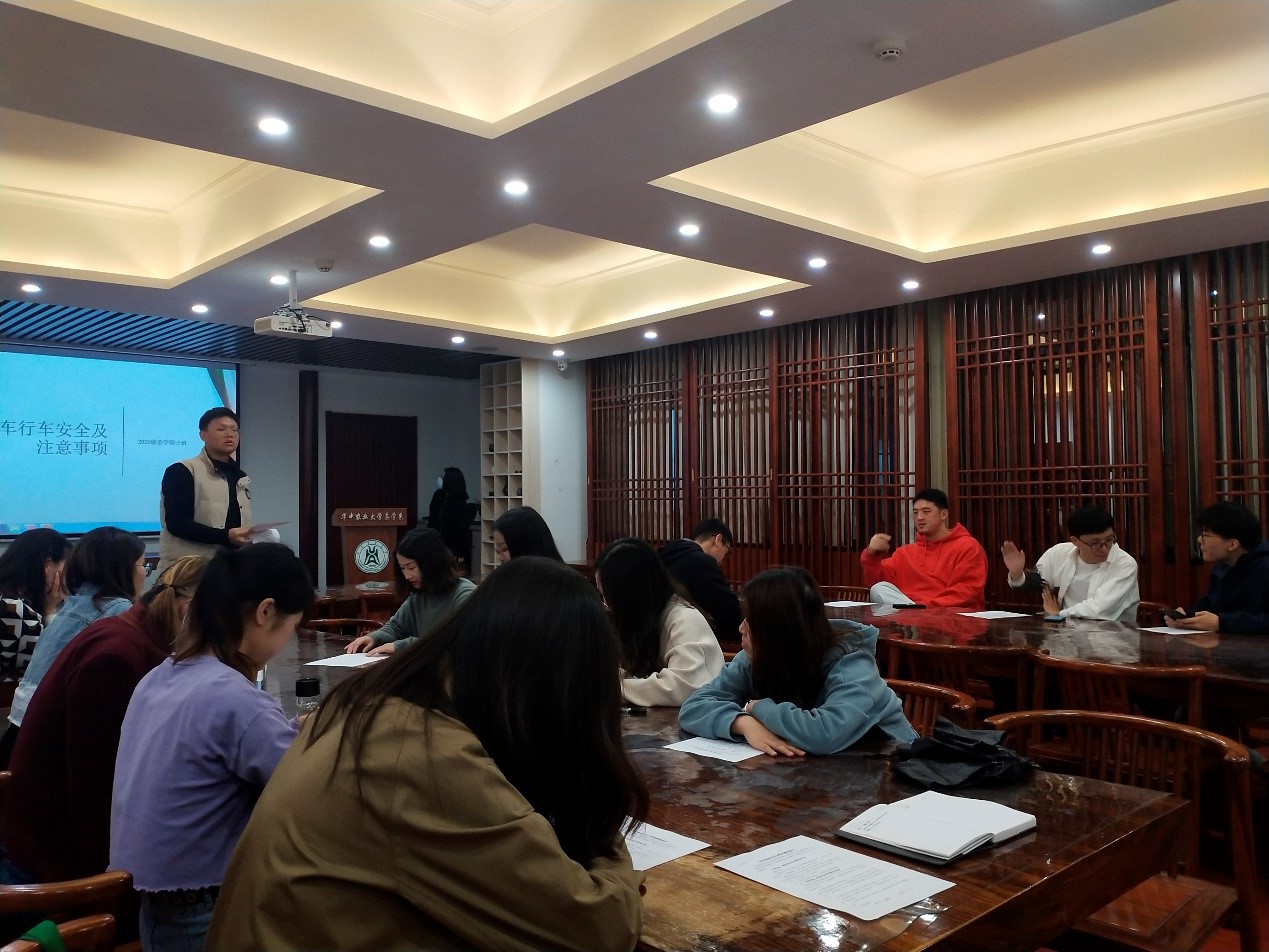 11月1日晚, 20级茶学硕士班于园林北楼耕读茶室开展安全教育主题班会,班长叶夏莉对关于电动自行车安全的文件进行宣读。