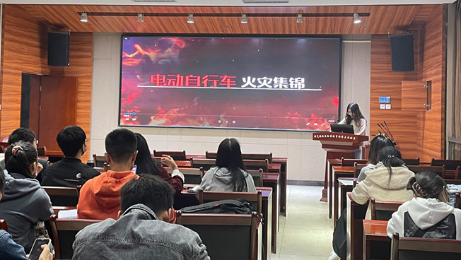 在本次班会上,首先播放了电动车起火视频警示录,该视频呈现了多起由电动车引发的火灾事故,给同学们带来了很大的视觉冲击力,使同学们深刻认识到遵法守规、文明骑行、预防火灾的重要性和严肃性。