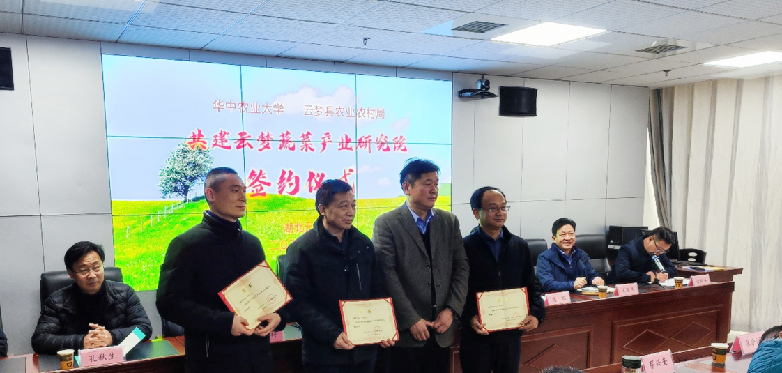 会上,学校与云梦县农业农村局签订了共建“云梦蔬菜产业研究院”协议。省农业农村厅领导、云梦县领导共同为“云梦蔬菜产业研究院”授牌。聘任云梦县农业农村局副局长倪三毛和澳门十大网投正规官网平台宋波涛教授为首届研究院院长。聘任湖北省蔬菜办公室主任袁尚勇、湖北省农技推广总站研究员羿国香和我校澳门十大网投正规官网平台汪李平教授为产业顾问。