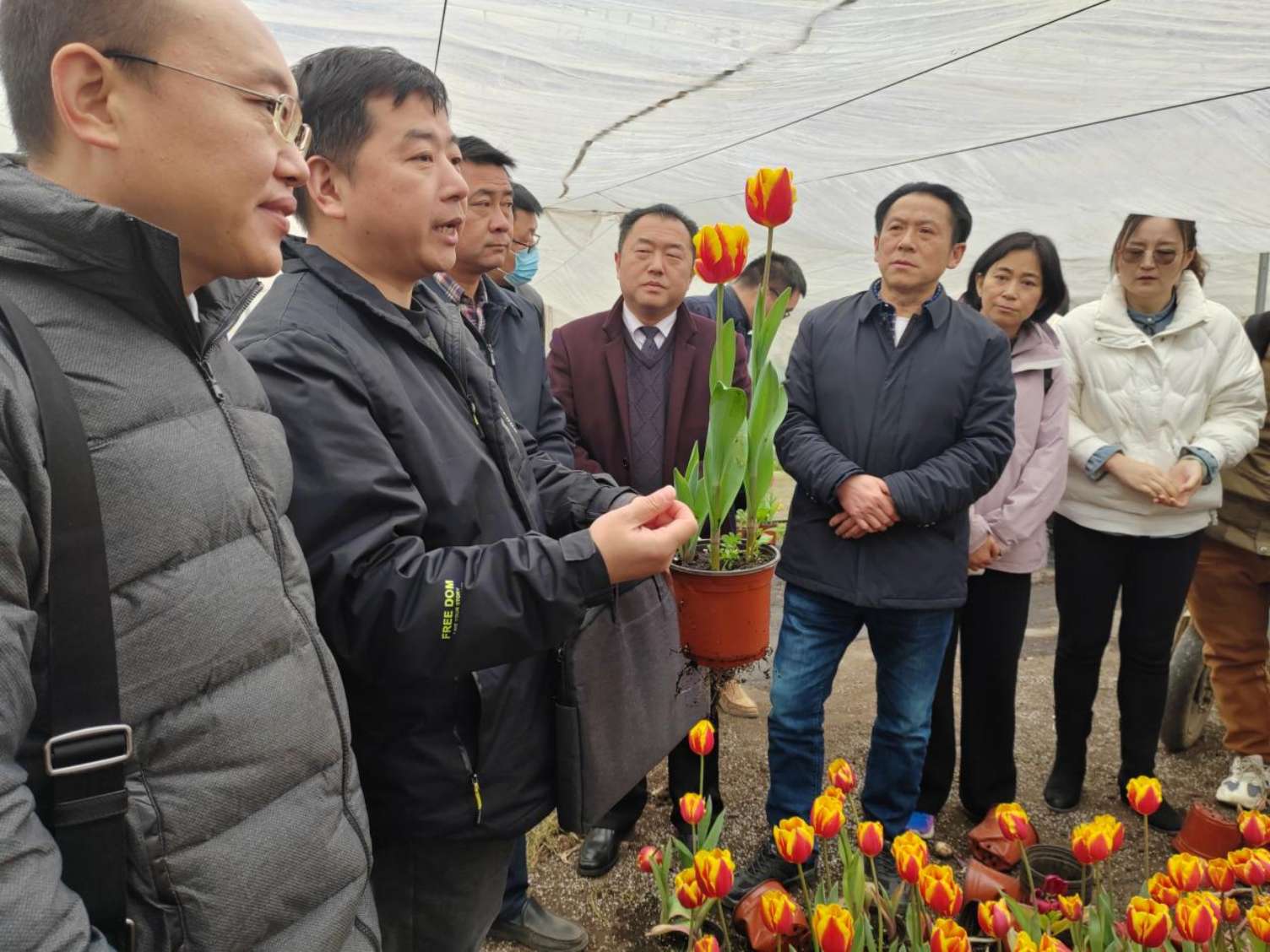 产祝龙教授向与会专家介绍国产郁金香的盆栽生产