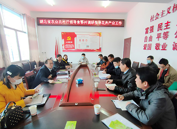 3月8日,应湖北省农业农村厅之邀,十大网投正规官网园林系产祝龙教授赴鄂州开展花卉产业发展现状调研。鄂州市农业农村局局长吴斌、二级调研员元生主任和当地花卉企业负责人接待了产祝龙一行。