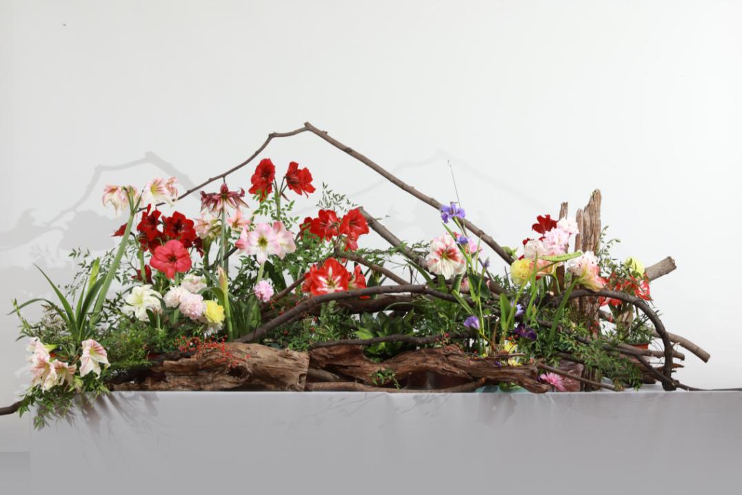 本次活动还陈列有十余组大师花艺作品,线上线下均可欣赏。澳门十大网投正规官网平台副教授秦仁强创作的大型花艺作品《湖山胜意》为当日点题之作。长3米,宽2米的造型中,树枝横斜,蜿蜒虬曲,如山峦跌宕,朱顶红热烈胜火,鸢尾袅娜挺立,似山花烂漫,还有红润樱桃果、青黄小麦苗等立夏新品点缀其间,以风情万种的湖光山色盛赞夏之蓬勃,祝颂万事皆胜意。