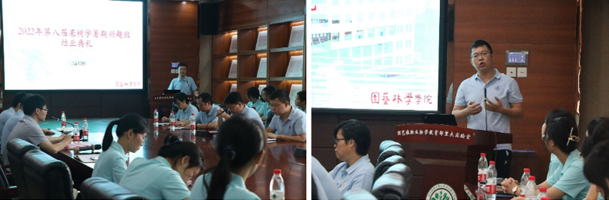 7月7日晚,兴趣班开班典礼在园林南楼206会议室隆重举行,学院程运江院长、周继荣副院长、研究生辅导员肖晗老师及果树学系全体在校教师出席了开班仪式。