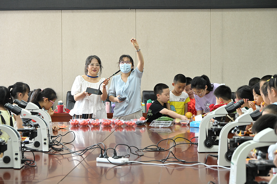 实验室副主任柴利军教授指导小朋友们使用显微镜