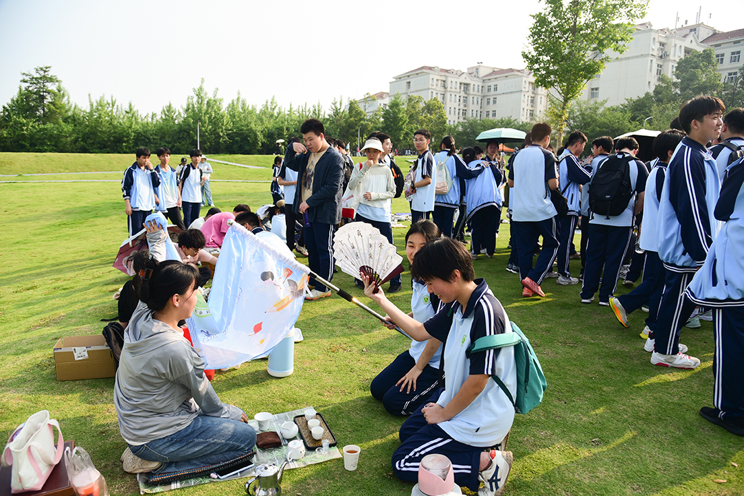 活动过程中,洪山高中高一全年级640余人高中学子来校研学,同学们学以致用、操作自如,用心冲泡每一杯茶,为参与活动的高中生们带来了愉悦的品饮体验。茶会上,师生融乐,充满了欢声笑语。茶会间隙,同学们还展示了吉他弹奏、健美操等才艺,为活动现场增色不少……