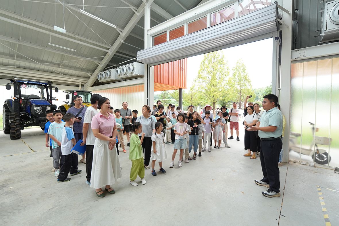 9月6日上午,来自武汉市20余所中小学的学生与家长一起走进澳门十大网投正规官网平台数字果园机械库。橙、蓝、白相间的农业机械整齐排列,数字果园智能监测系统、智能播种机、智能巡检机器人、无人采摘机、植保无人机等智能系统和数字机械,引得孩子们惊喜连连。基地工作人员邹运乾老师模拟演示,同步讲解无人机械可以通过喷头将药液均匀洒向下方的果树时,一位家长趁机给孩子科普:“你看它的雾多细,这样农药能更好地黏在叶子上,既不会浪费,还能避免农药接触人体,这就是科技的力量。”