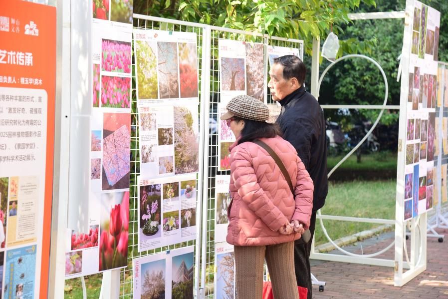 以“学科文化 艺术传承”为主题的各种海报、展品排列在水产楼侧边,以及从园林楼延伸到狮山广场上的道旗文化,将学科研究方向与育人理念紧密结合,将前沿研究转化为有趣的视觉呈现,包含学科纪录片、园林植物摄影作品展、园艺讲堂、景园学堂、林苑讲坛、学术之星、邂逅园艺等,内容丰富,观潮如流,形成一道秀色可餐的视觉盛宴。