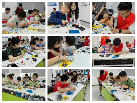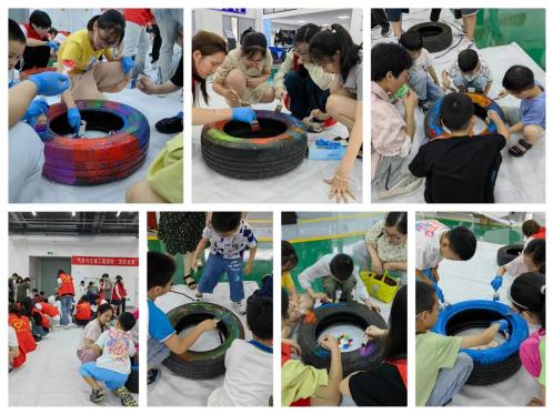 小朋友们发挥创意,团队作战用画笔在轮胎上绘制出自 己喜欢的图案和色彩。此外,他们还动手拼装汽车小玩具。当看到自己亲手拼装的遥控汽车小玩具在遥控器的操控下灵活行驶时,小朋友们的脸上洋溢出了满满的成就感和喜悦。