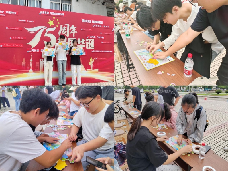 拼图为媒,知识为钥,学院于爱国主义文化广场开展中国行政区拼图大赛,共同探索着中国行政区划的奥秘,每一块拼图的精准对接,都凝聚着对祖国山河的深情厚谊。学生或低头沉思,或相互讨论,或迅速动手,整个场面充满了浓厚的爱国氛围和欢乐的气氛。随着时间的推移,一幅幅完整的中国地图逐渐在同学们的巧手下展现出来,它们不仅展示了祖国的辽阔疆域,更凝聚了同学们对祖国的深深热爱。