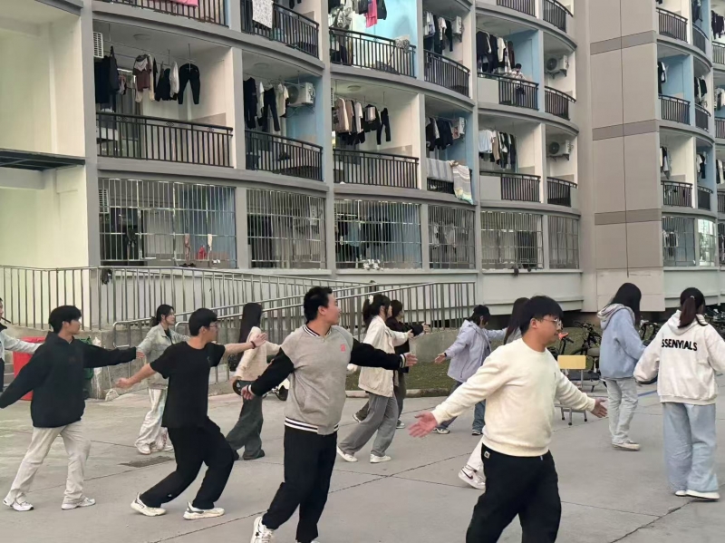 活动结束后,学生们意犹未尽地分享着自己的感受。“古法操真的很有魔力,做完之后感觉整个人都轻盈了许多。”一位同学兴奋地表示。另一位同学也感慨地说:“之前就在短视频刷到过,今天试了一下,不一会儿就冒汗了,以后我自己也会坚持练下去。”