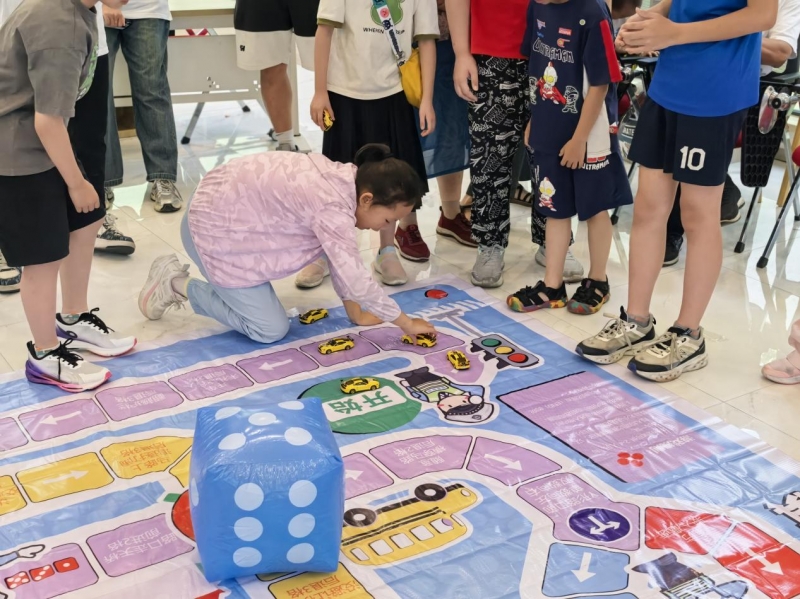 寓教于乐,交通棋盘解锁安全密码。“交通大冒险”环节将活动推向高潮。地面上,一幅由彩色喷绘布精心铺设的巨型飞行棋棋盘格外醒目,每一个格子都巧妙融入了交通安全知识问答或情景模拟。孩子们分成四支活力小队,化身“交通小先锋”,在掷骰子、跳格子的欢乐竞赛中,争先恐后地回答交通标识含义、演练安全过马路步骤。安全知识不再是枯燥条文,而是闯关夺胜的“秘密武器”,欢笑声中,规则意识已悄然扎根。
