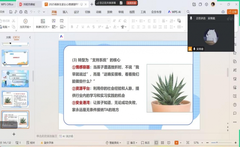 课堂围绕“理解‘心’波动”“走近彼此的心灵”“科学应对,求助有道”三大主题展开,深入剖析了大学生在独立生活、人际交往、目标确立等方面可能面临的心理挑战,引导家长从“指挥者”转变为“支持者”,通过倾听、共情与信任,构建温暖而稳固的情感支撑体系。