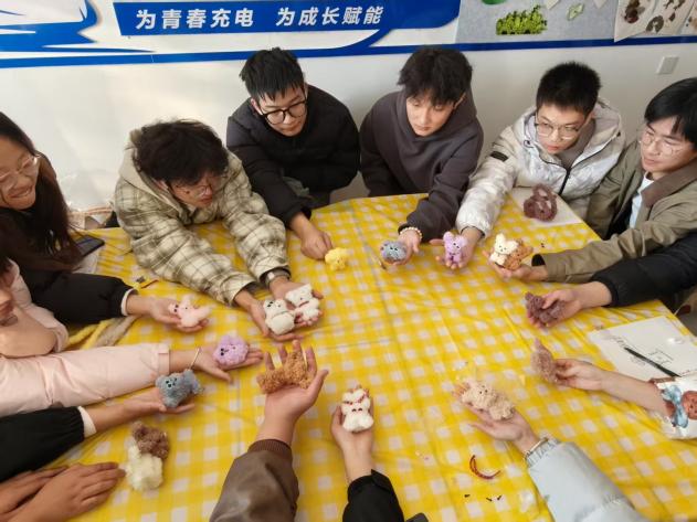 活动现场设置了一系列互动环节,包括“竞猜能手”“DIY毛线娃娃”以及“你听我猜”等趣味内容。同学们在轻松愉快的氛围中,通过emoji猜成语锻炼思维,亲手制作毛线娃娃舒缓情绪,配合完成听歌绘画任务增进默契,并在活动尾声合影留念,记录下属于彼此的温暖瞬间。